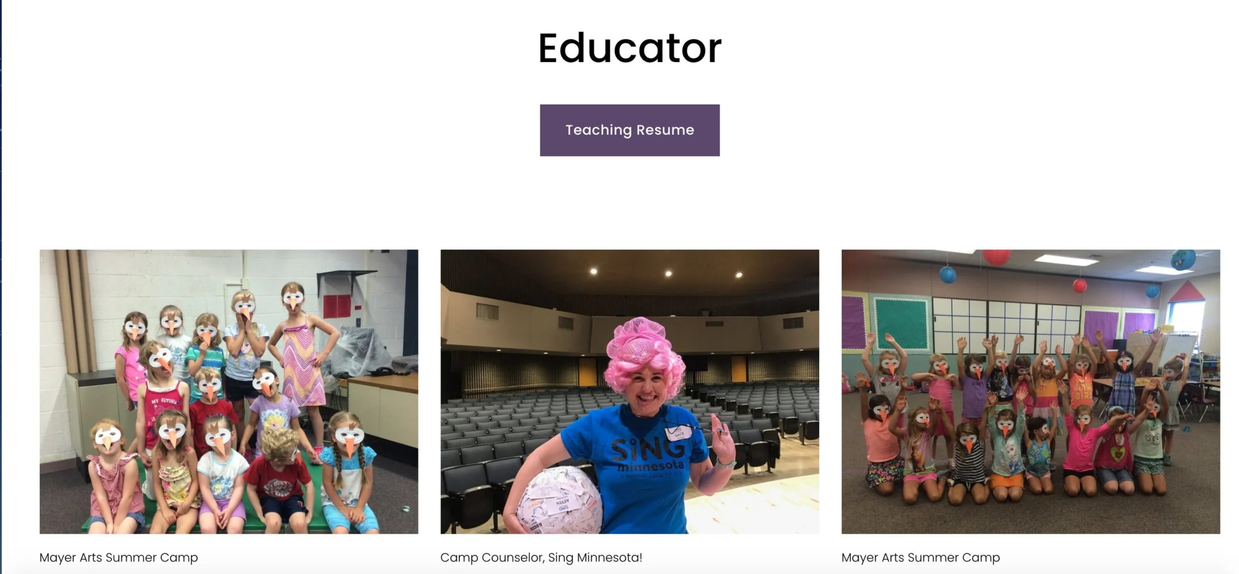 As I reflect on the entirety of my website, I wonder how or if I should work to integrate some of my other experience into my Educator section. For example, I’ve done a lot of mentoring of students in stage management, but I’m not sure how to communicate that work. Perhaps I could incorporate this into my teaching artist manifesto statement.